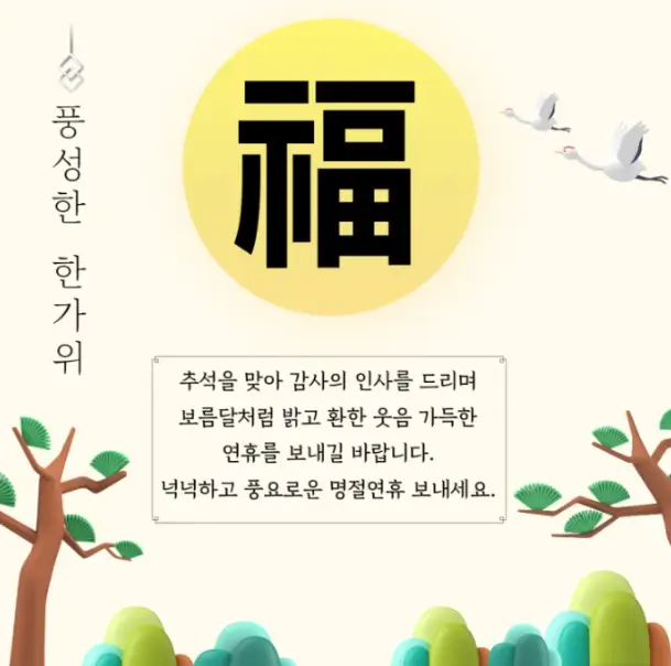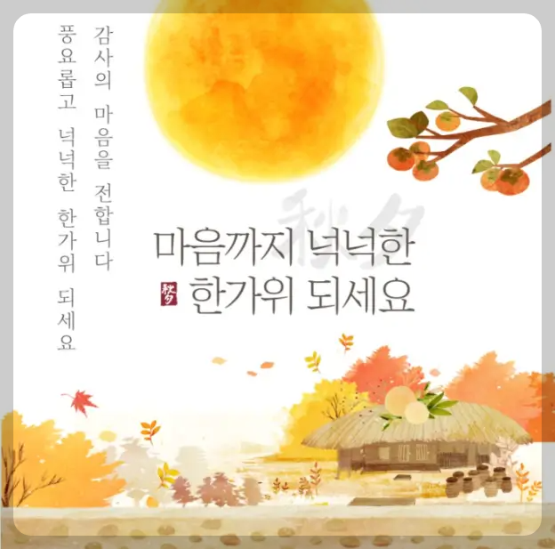 풍요로운 한가위, 행복한 추석 보내세요. 맛있는 음식 많이 드시고, 즐거운 시간 보내시길 바랍니다.